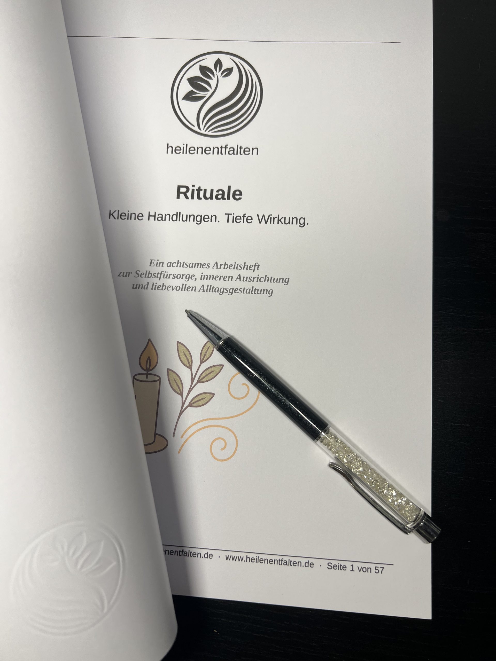 Ein achtsames Arbeitsheft zur Gestaltung persönlicher Rituale. Kleine Handlungen mit tiefer Wirkung – für mehr Präsenz, Selbstfürsorge und innere Ausrichtung im Alltag. 57 Seiten.